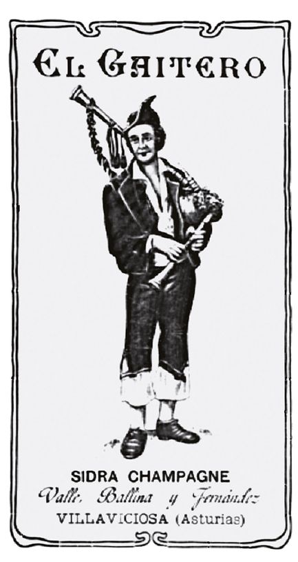 Observaciones: Etiqueta de sidre de El Gaitero, cola típica imaxe’l gaiteru y una tipografía ornamentada propia de la época. La etiqueta amuesa l’espoxigue industrial y exportador de la compañía, que trabayaba con enfotu pa llevar la sidre asturiano más enllá les nueses llendes.