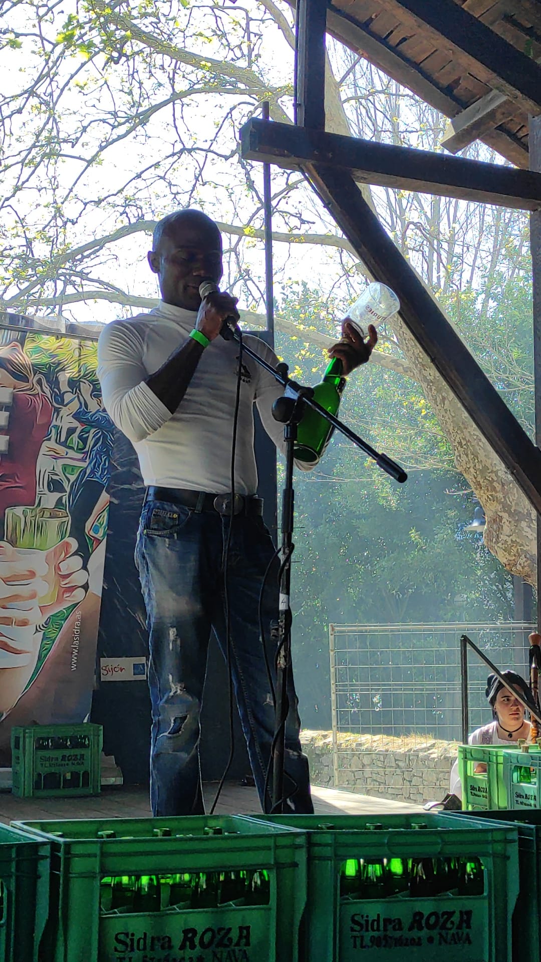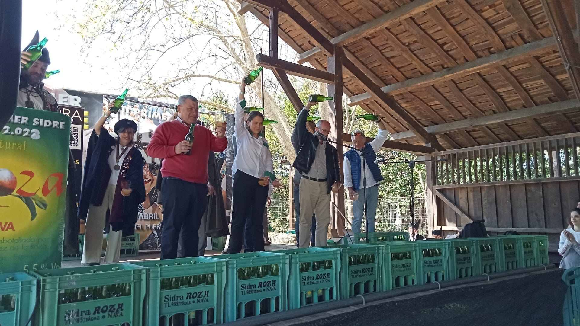 Pa güei tenemos l’actuación del “Coru Sidreru” col Coru de Muyeres de San Esteban, que van interpretar Cancios de Chigre y van animar al públicu a participar, con un pase a la una y media y otru sobre los cuatro de la tarde.