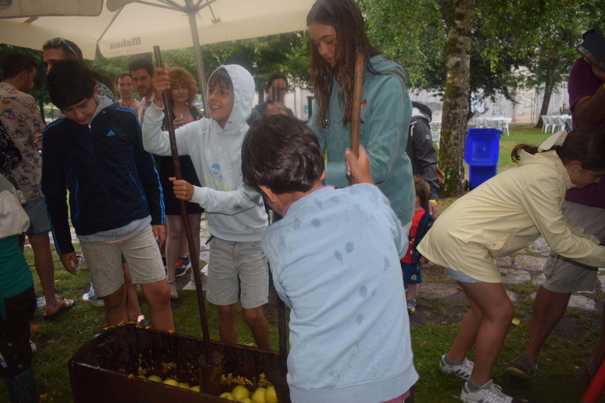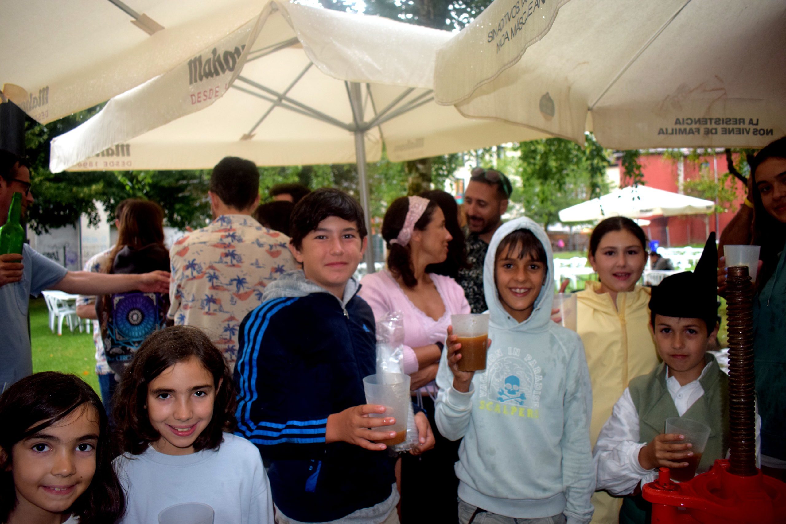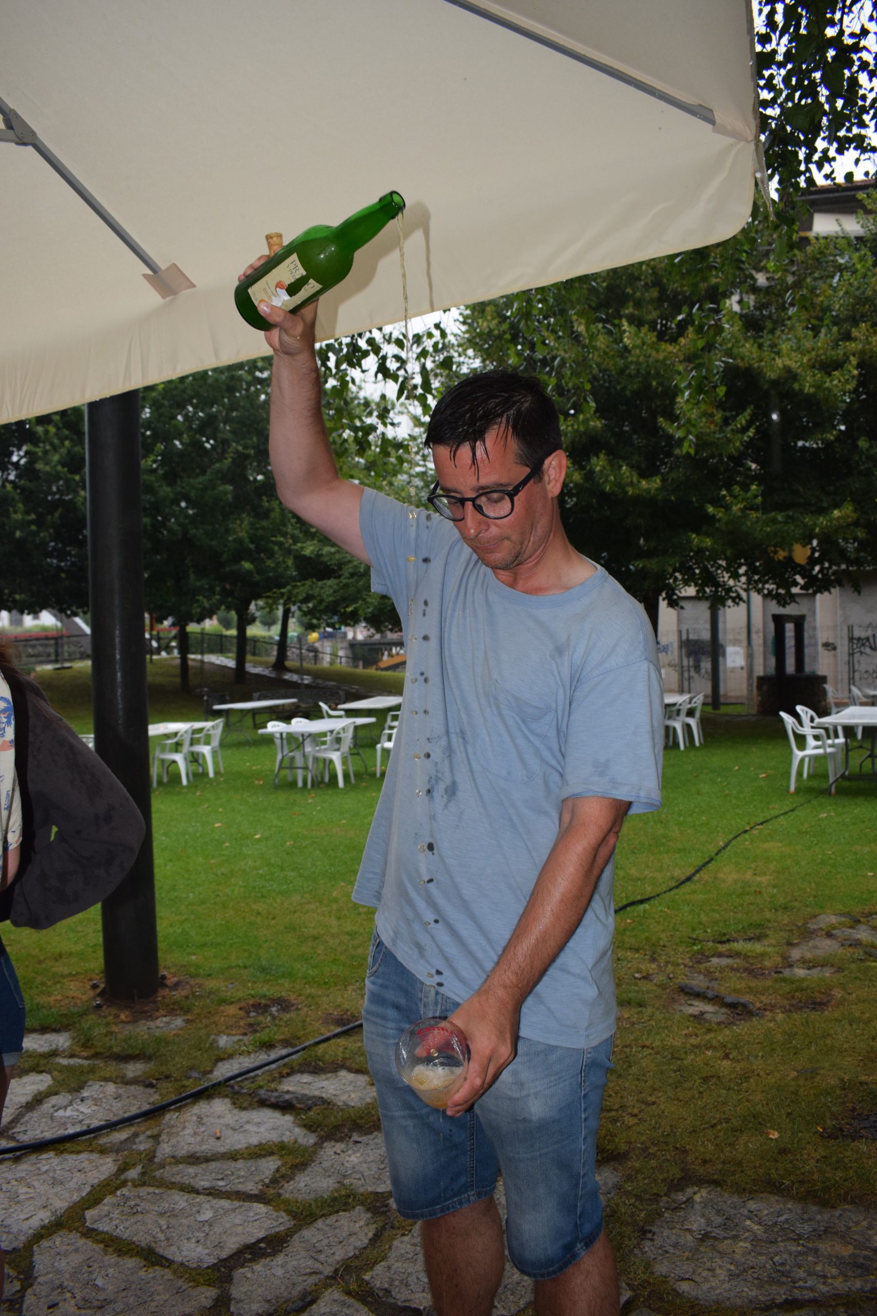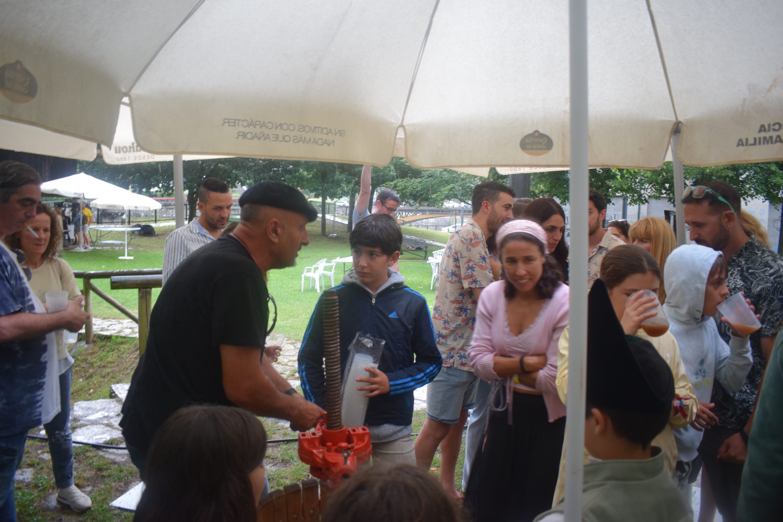 Seique l’agua -que cayó a bastiaos- entorpeció dellos de los planes del sábadu, la folixa nun paró por ello, siendo destacable la cantidá de xente de fuera d’Asturies que s’averó a La Riera y que colaron convertios, pallabres testuales, “n’enamoraos absolutos d’Asturies, la so xente y la so sidre”. El taller de facer sidre, al que s’apuntaron non solo la reciella, sinón dellos adultos, valió pa repasar dellos aspeutos del procesu d’ellaboración sidrero; el puntu más divertíu de la tardi foron los xuegos tradicionales pa toles edaes, pasaos per agua pero bien prestosos ya’l taller de bailles del país baxo la lluvia.