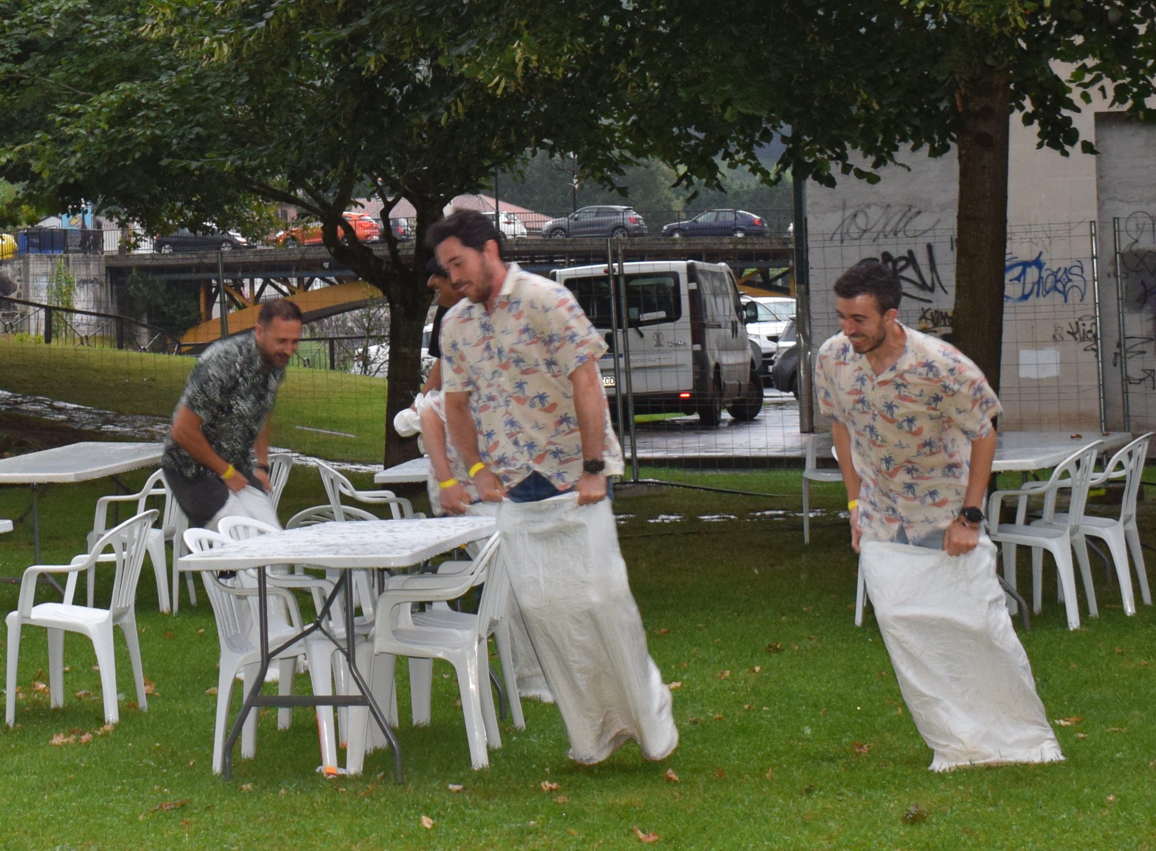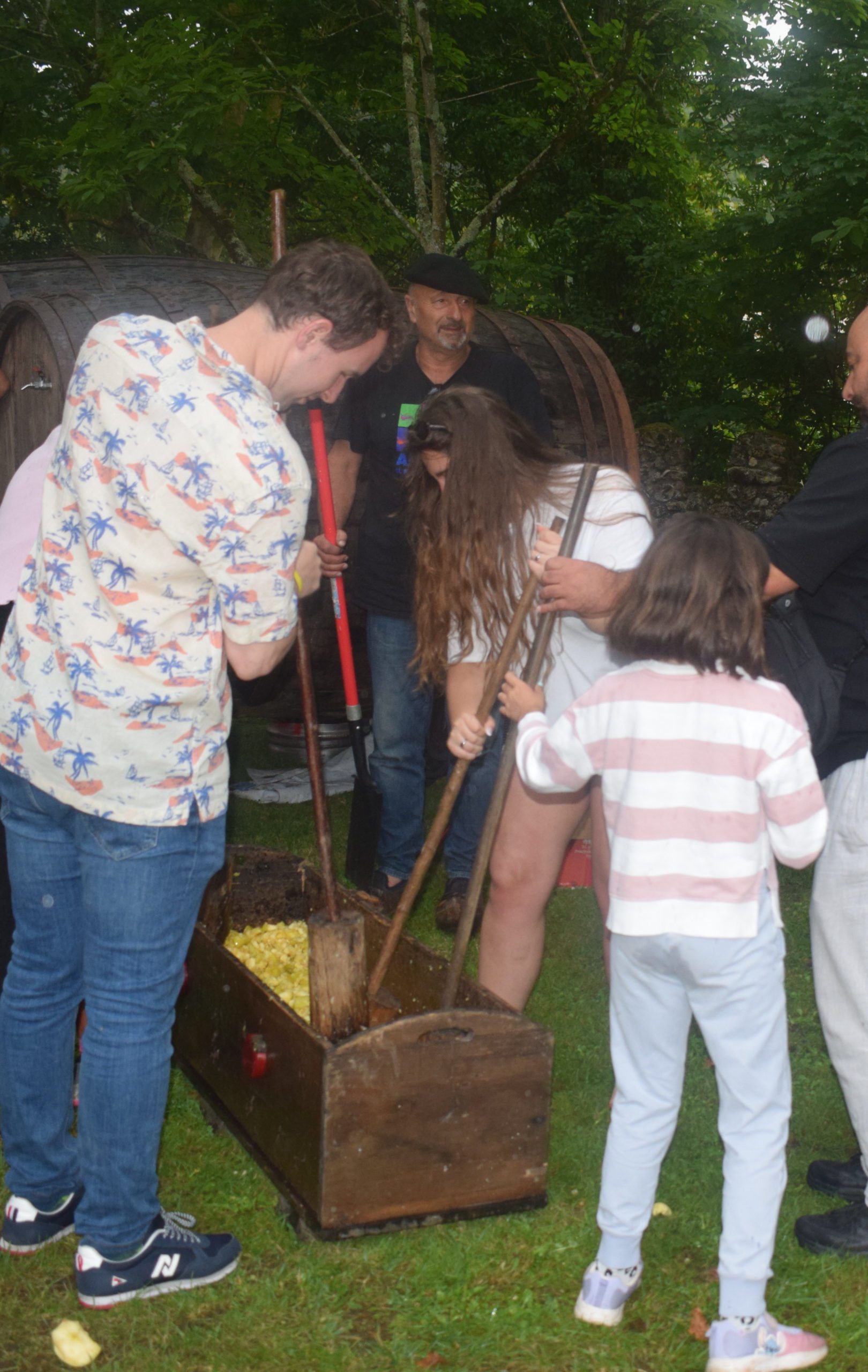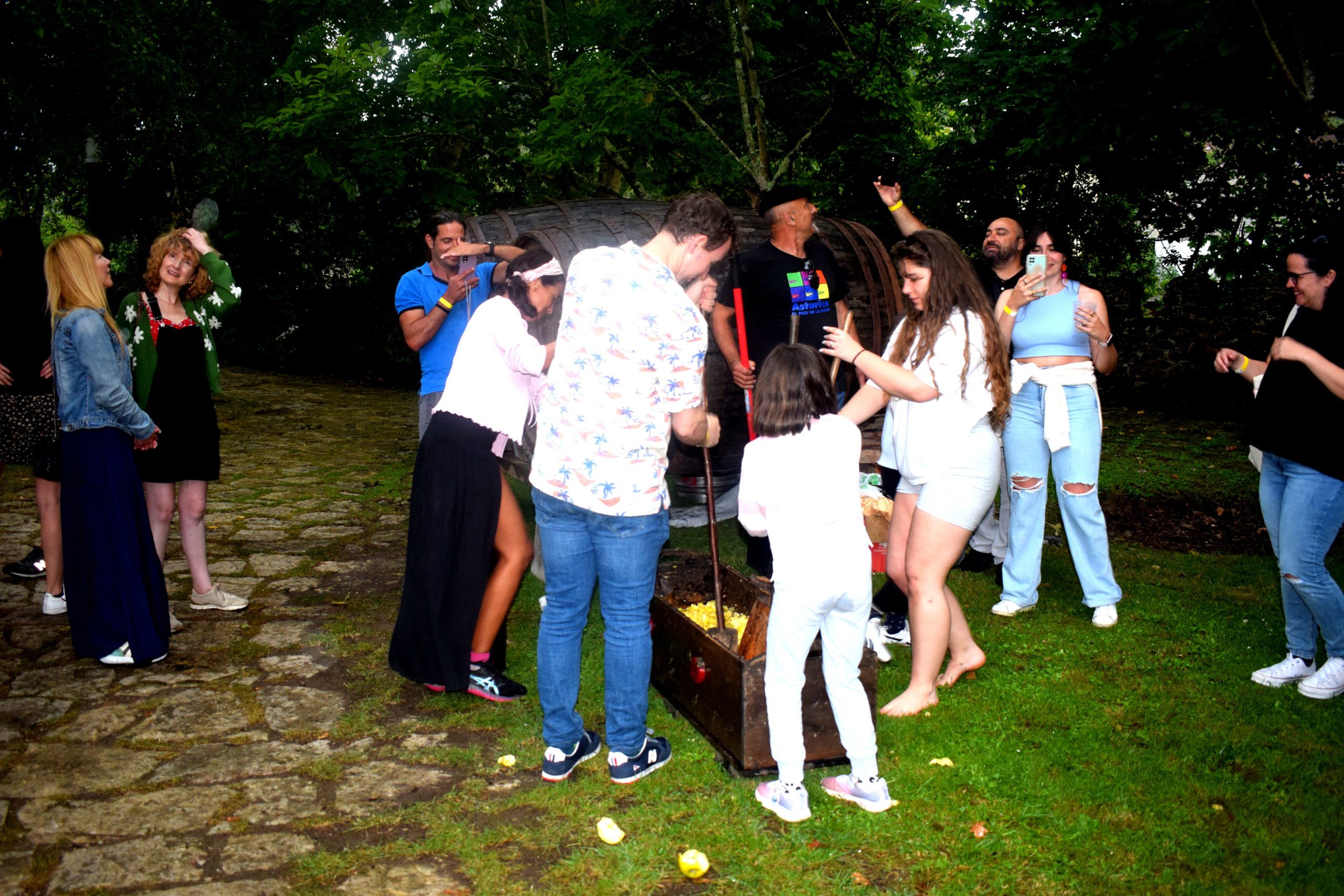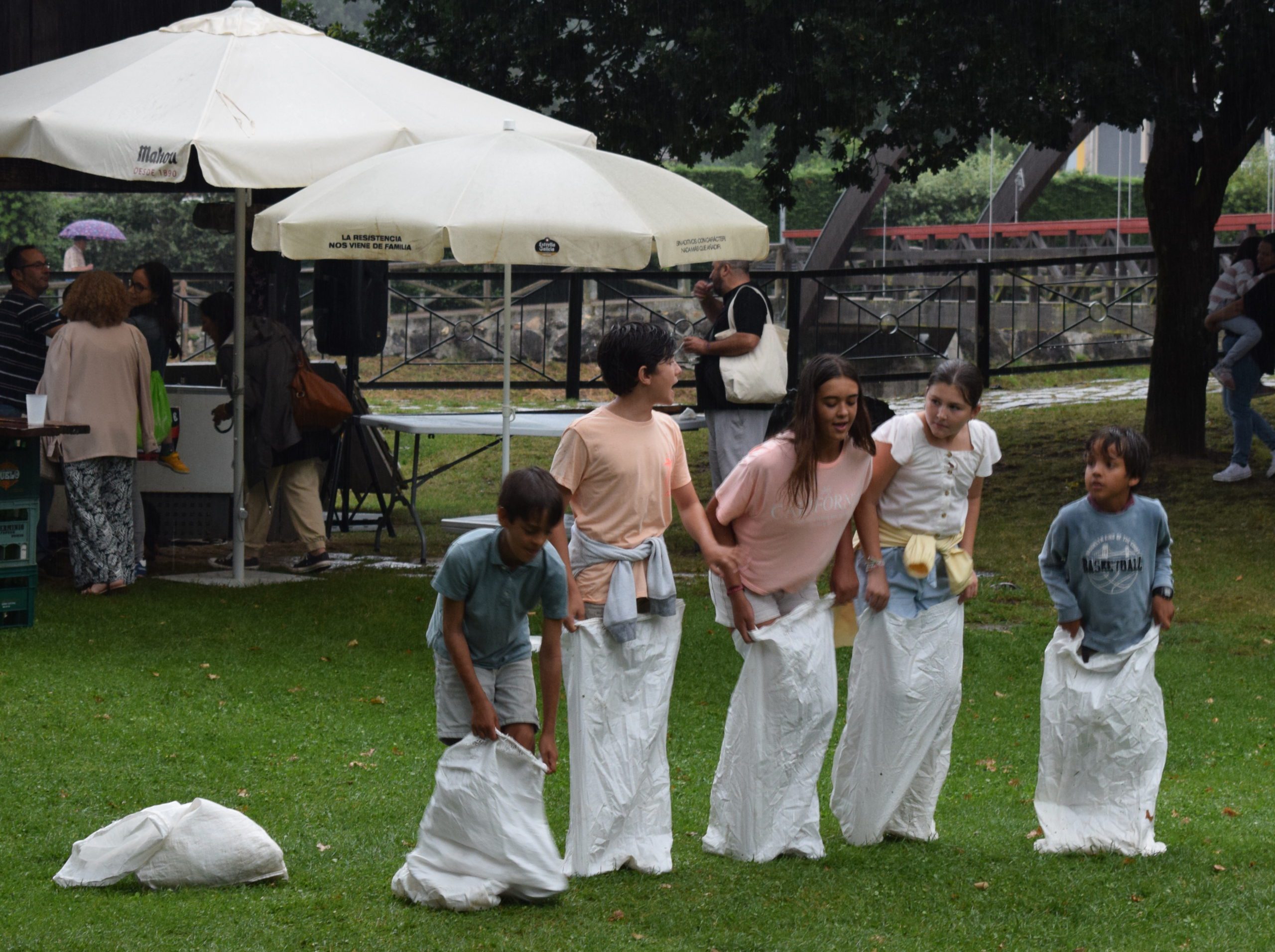 Seique l’agua -que cayó a bastiaos- entorpeció dellos de los planes del sábadu, la folixa nun paró por ello, siendo destacable la cantidá de xente de fuera d’Asturies que s’averó a La Riera y que colaron convertios, pallabres testuales, “n’enamoraos absolutos d’Asturies, la so xente y la so sidre”. El taller de facer sidre, al que s’apuntaron non solo la reciella, sinón dellos adultos, valió pa repasar dellos aspeutos del procesu d’ellaboración sidrero; el puntu más divertíu de la tardi foron los xuegos tradicionales pa toles edaes, pasaos per agua pero bien prestosos ya’l taller de bailles del país baxo la lluvia.