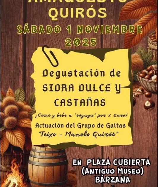 LA SIDRA.- Cola llegada de la seronda, el conceyu de Quirós vuelve abrir les sos puertes al ritual de saborgu y tradición: l’Amagüestu. Esti añu, l’Amagüestu de Quirós 2025 va tener llugar el sábadu 1 de payares,de magar les 18:30 hores, na Plaza Cubierta (antiguu Muséu) de Bárzana.